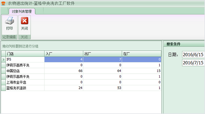 傲蓝洗衣工厂软件适合洗衣工厂业务全流程的操作,包括有:工厂接受、清洗、上挂、检验、衣物拍照、工厂送出等等的功能、可以按年、月、日查看每一个门店在一段时间内接收的多少衣物,出厂多少衣物,剩余多少衣物、物品从洗衣门店到洗衣工厂时,店员开具《衣物移交单》,送货人与店员一起核对,正确无误后,送货人输入用户名密码,确认收货、还可以打印导出报表,方便管理员核算。